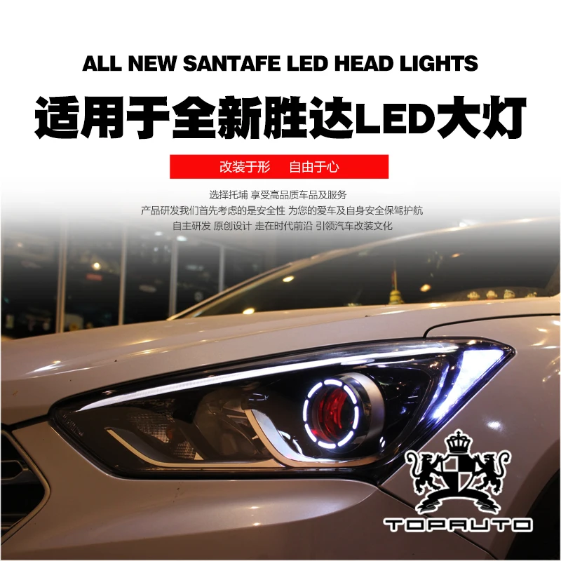 For Hyundai New Santafe 2017 Refit Xenon Headlight Assembly LED Angel Eye Daytime Lantern